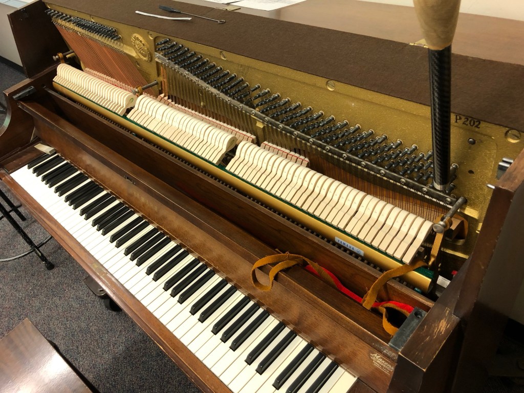We have three P202s, and they tune smoothly. Still, they’re relatively short studio uprights (shorter than the Hamiltons) with even more foreshortened speaking lengths in the low tenor and bass. I keep thinking that the weaker hybrid wire drawn in France by Stephen Paulello would benefit the tone color of those few last low tenor plainwire notes.